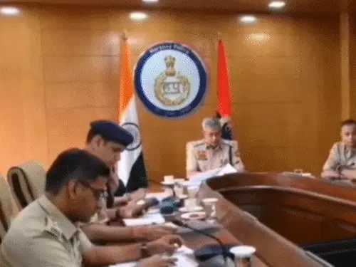 प्रदेश की कानून व्यवस्था को लेकर जिला और राज्य स्तरीय अधिकारियों के साथ मीटिंग करते डीजीपी शत्रुजीत कपूर (फाइल फोटो)।