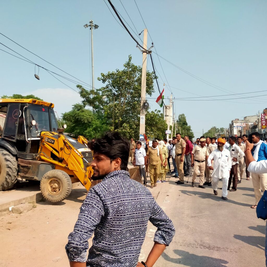 निसिंग लंबे समय से नपा प्रशासन स्थानीय बस अड्डा के पास बनी मीट मार्केट को हटाने के लिए प्रयासरत था। लेकिन कोर्ट में केस के चलते असफल रहा। फैसला आते ही नपा प्रशासन ने बीच बाजार में कैथल रोड पर बने मीट के सभी 14 खोखों को पुलिस की मदद से पीला पंजा चलाया। कुछ ही पल ने सभी खोखे जमीदोज कर दिए। हालांकि मीट शाप मालिक बेबस बनकर अपना नुकसान देखते रहे। पीला पंजा चलने से पहले दुकानदारों ने एक दो दिन के समय की मांग करते हुए खुद जगह खाली करने की गुहार लगाई, ताकि तोड़फोड़ के नुकसान से बचा जा से। लेकिन प्रशासन ने अनसुना कर दिया। हालांकि कई दिन पहले नपा सचिव बिना पुलिस मदद के मीट शाप हटवाने गया था। उस समय दुकानदार मीट खाली कर रहे थे। लेकिन बाद में उन्होंने मीट का काम बंद कर दुकानों में सब्जी और फल का काम शुरू कर लिया था। मंगलवार को नपा ने पुलिस की मदद से मीट के खोखे तोड़ कब्जा खाली करवा लिया। इस दौरान नपा कर्मियों और दुकानदारों में नोक झोक भी हुई। उनका कहना था कि हमारा कारोबार खत्म हो गया। हम अपने बच्चों का पालन पोषण कैसे करेंगे। हालांकि नपा प्रशासन ने अनाज मंडी के पीछे करोड़ों की लागत से मीट मार्केट का निर्माण किया था। जिसमे 16 दुकानें और उनके आगे बरामदा बनाया गया था। ताकि बाजार से मीट मार्केट को स्थानांतरित किया जा सके। लेकिन अधिक दूर और डंपिंग पॉइंट से सटा होने के कारण मीट संचालक वहां जाने को रजामंद नहीं हुए।
